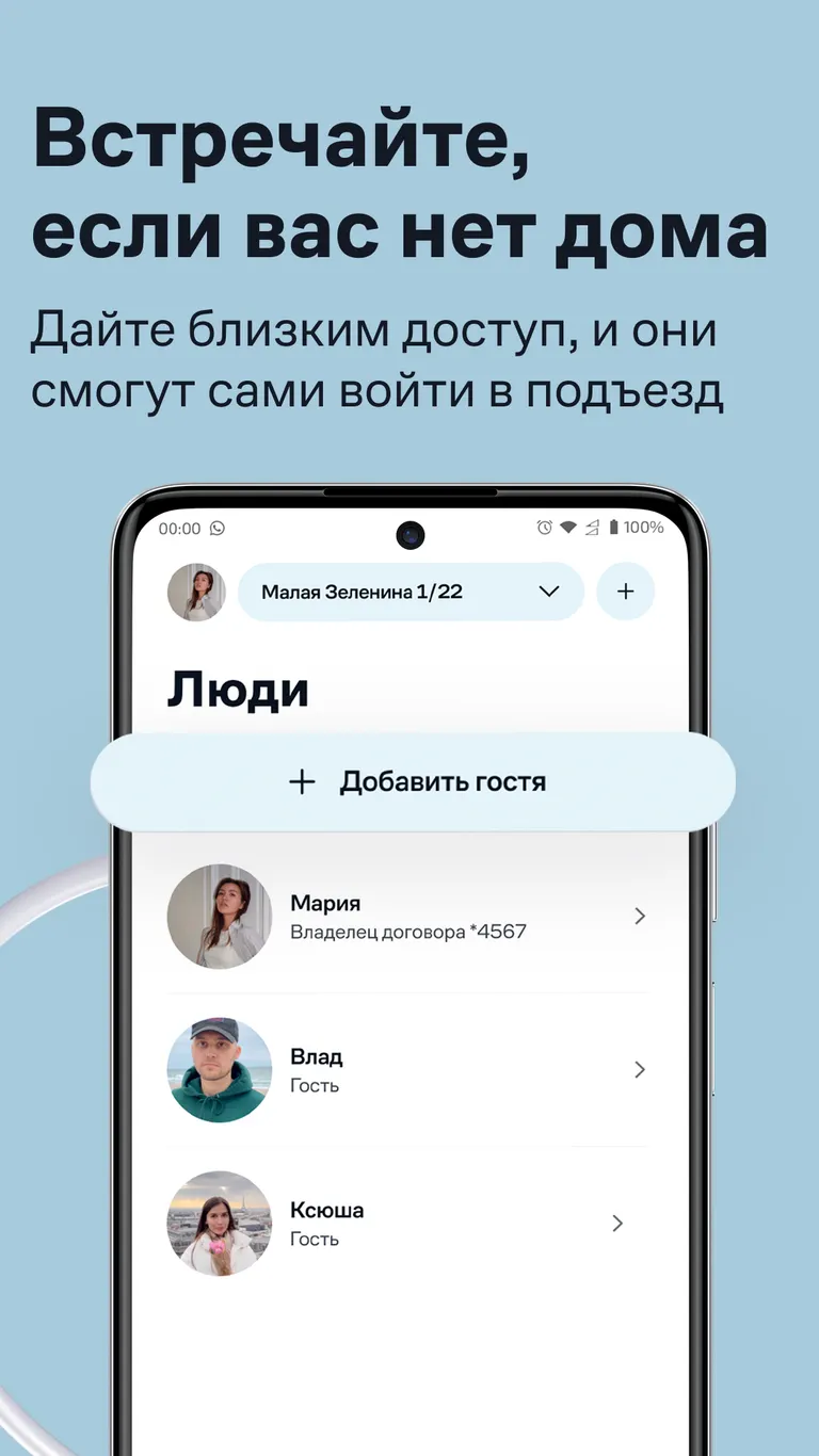 Приложение не только делает жизнь удобнее, но и повышает уровень безопасности вашего дома. Больше не нужно носить с собой ключи — доступ к дому всегда в вашем смартфоне.